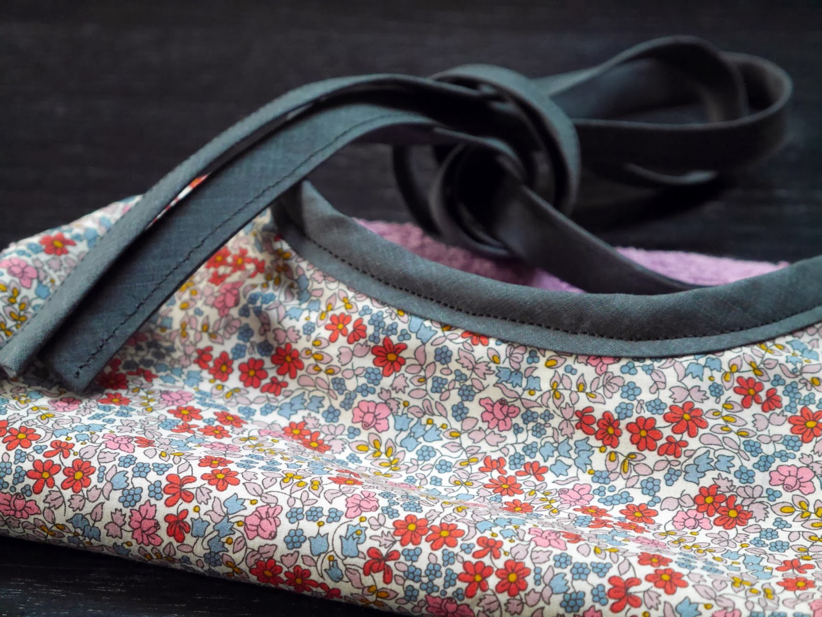Une petite carte réalisée à l’aide du livre « Initiation à l’aquarelle » de Charlotte Vannier accompagnée… d’une bavette liberty!